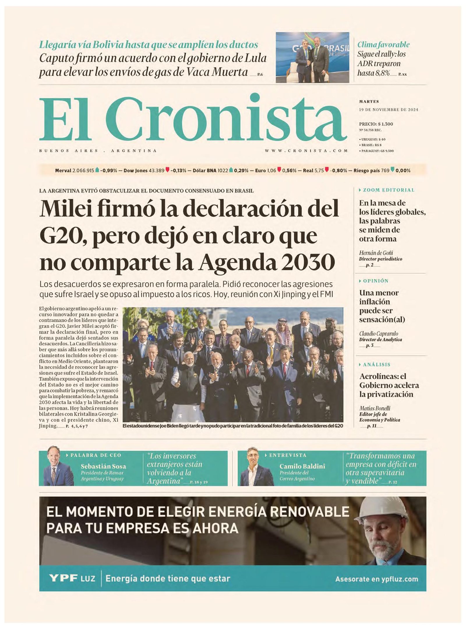 Tapas de los diarios del 19 de noviembre