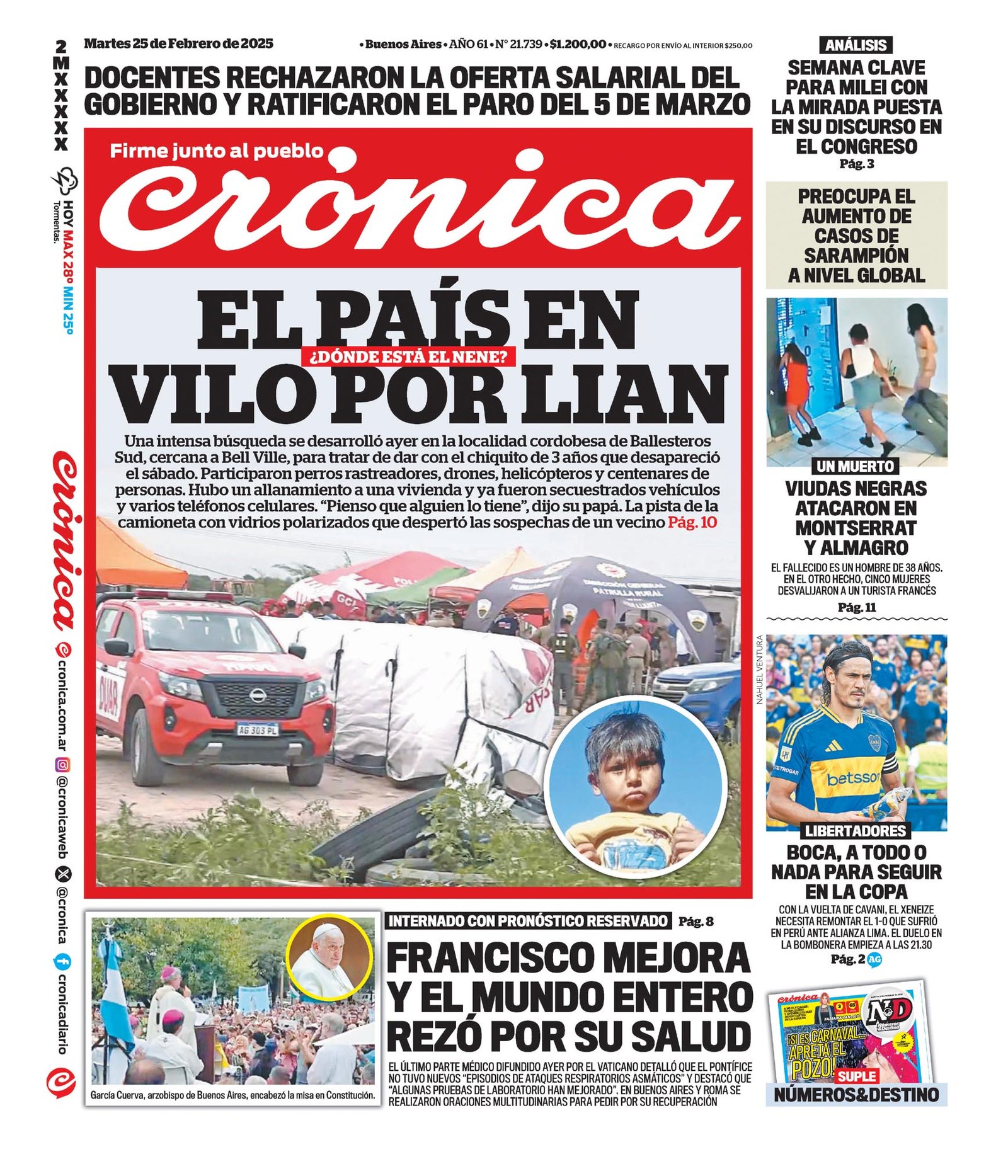 Tapas de los diarios del 25 de febrero