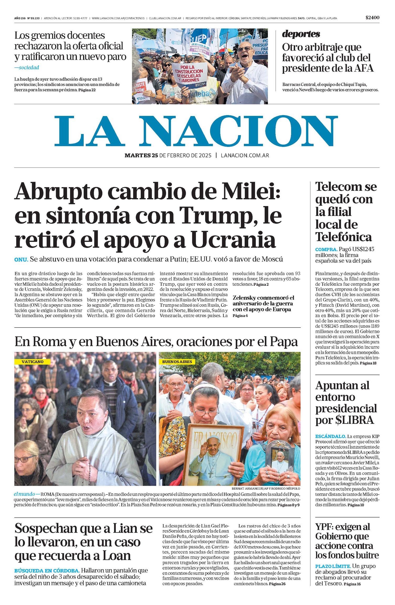Tapas de los diarios del 25 de febrero