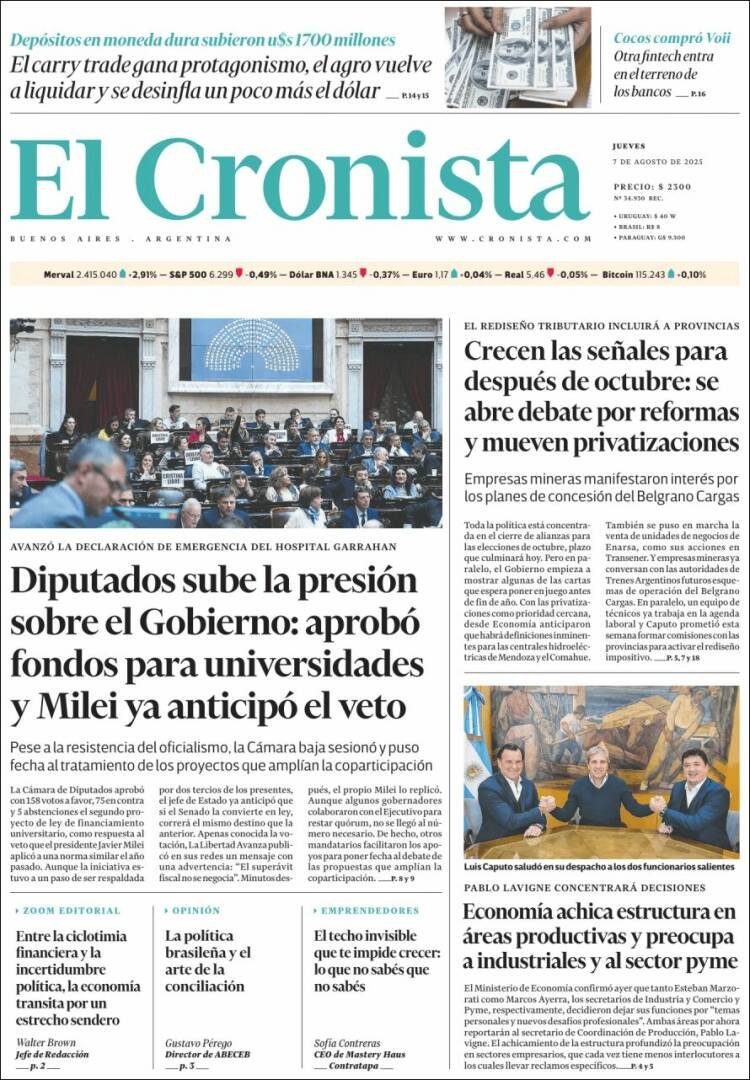 Tapas de los diarios del 7 de agosto
