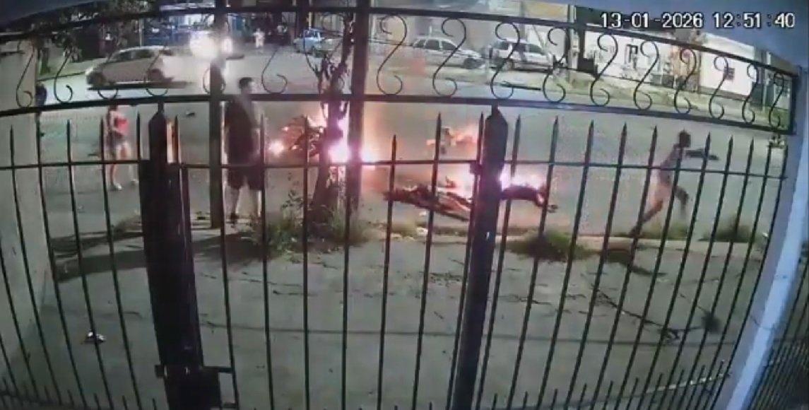 Las imágenes son realmente muy fuertes. Registradas por una cámara de seguridad se ve como chocan de frente dos motos a alta velocidad generando una explosión en la intersección de las calles Donato Álvarez y Cazón, ubicadas en Monte Chingolo.