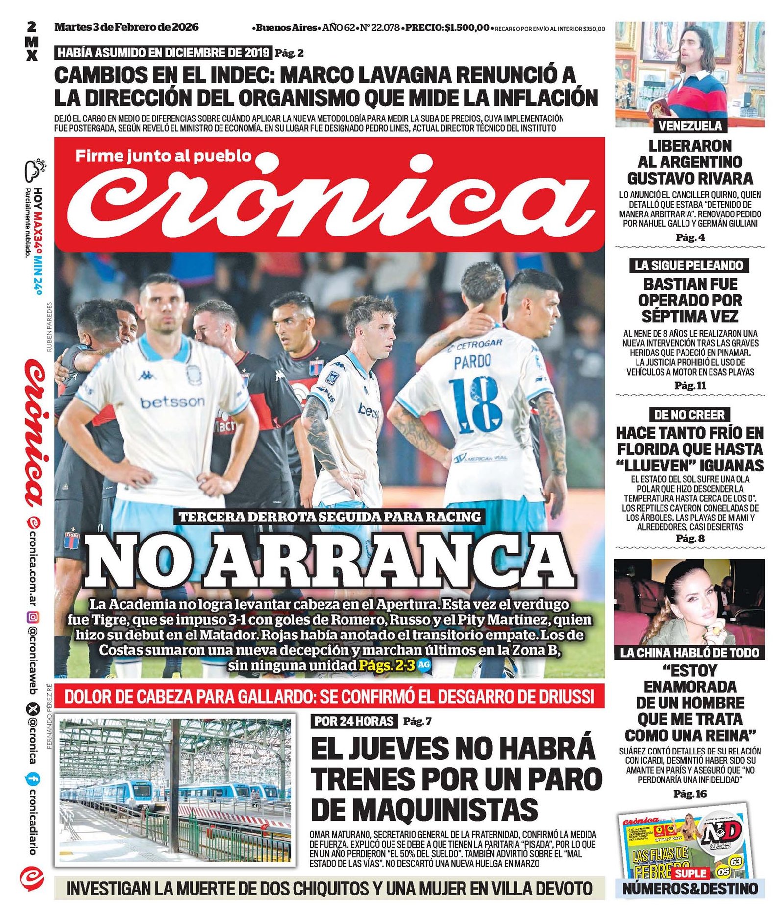 Tapas de los diarios del 3 de febrero