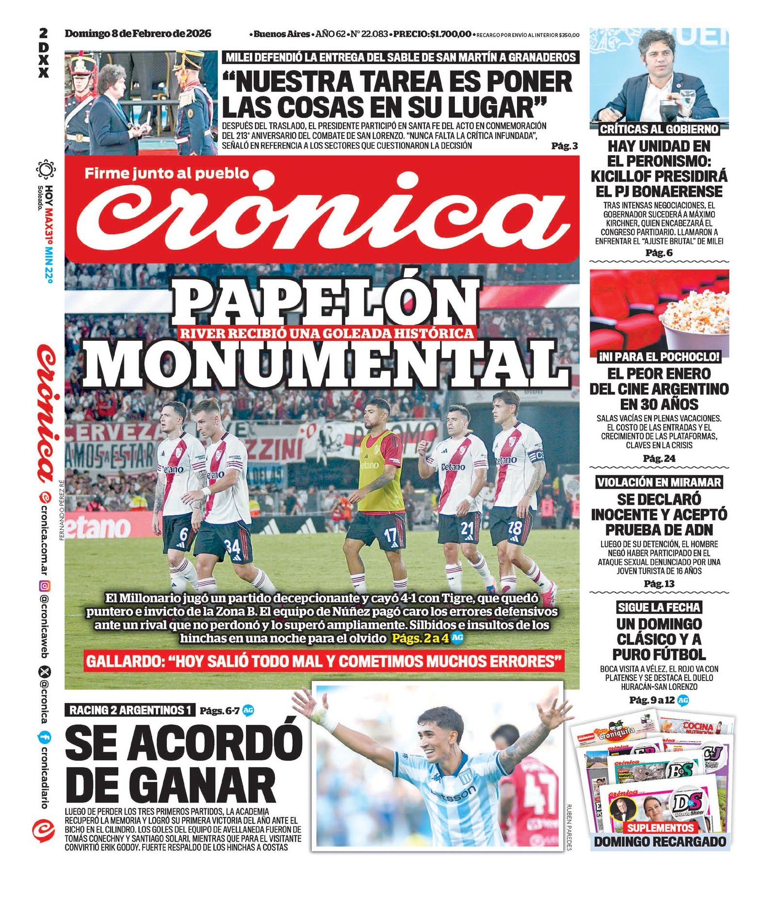 Tapas de los diarios del 8 de febrero