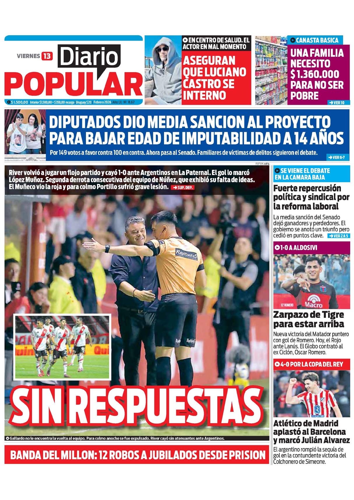 Tapas de los diarios del 13 de febrero