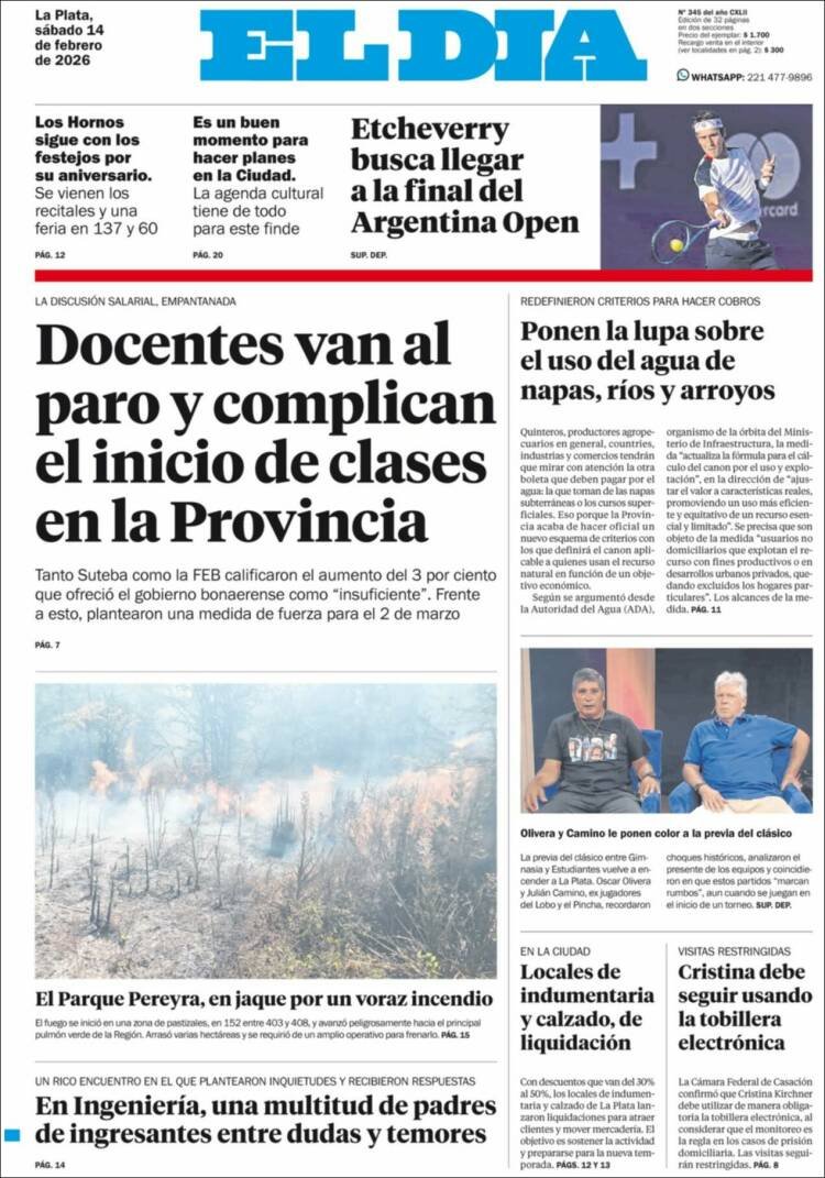 Tapas de los diarios del 14 de febrero