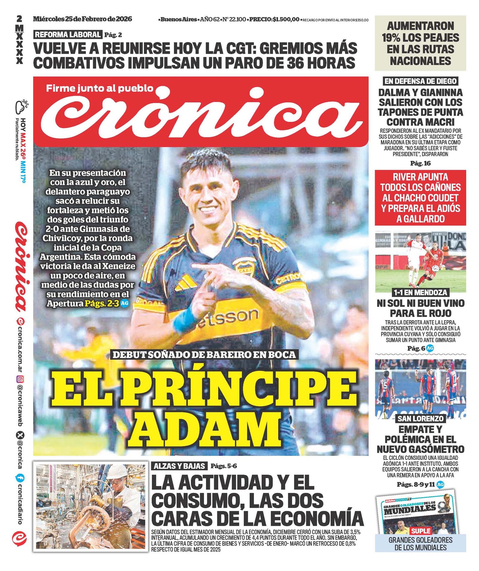 Tapas de los diarios del 25 de febrero