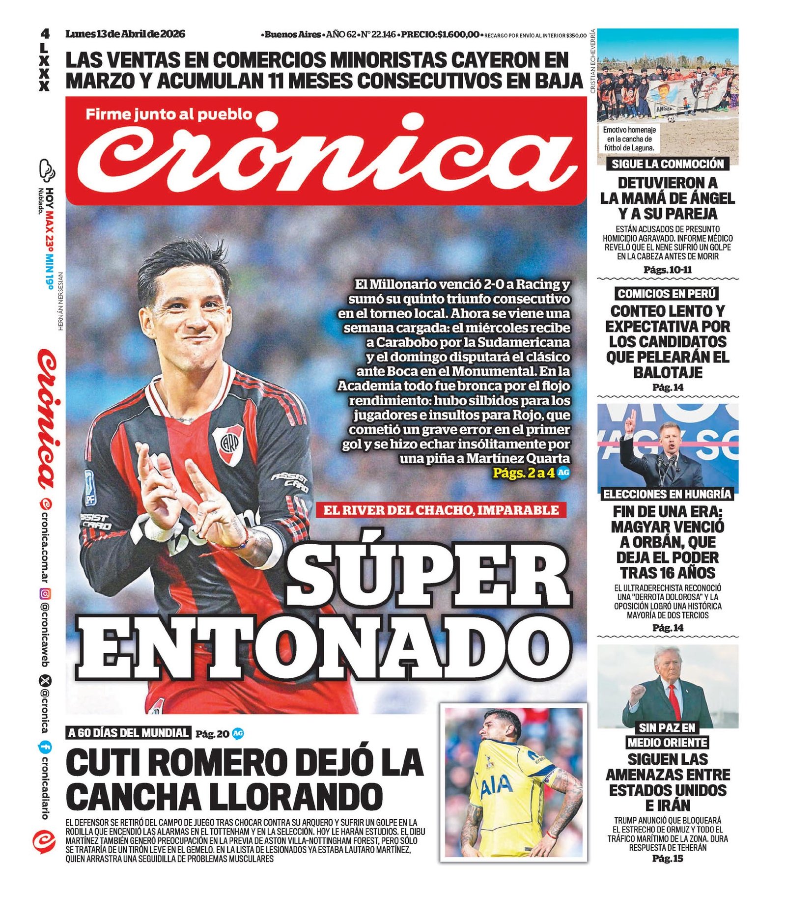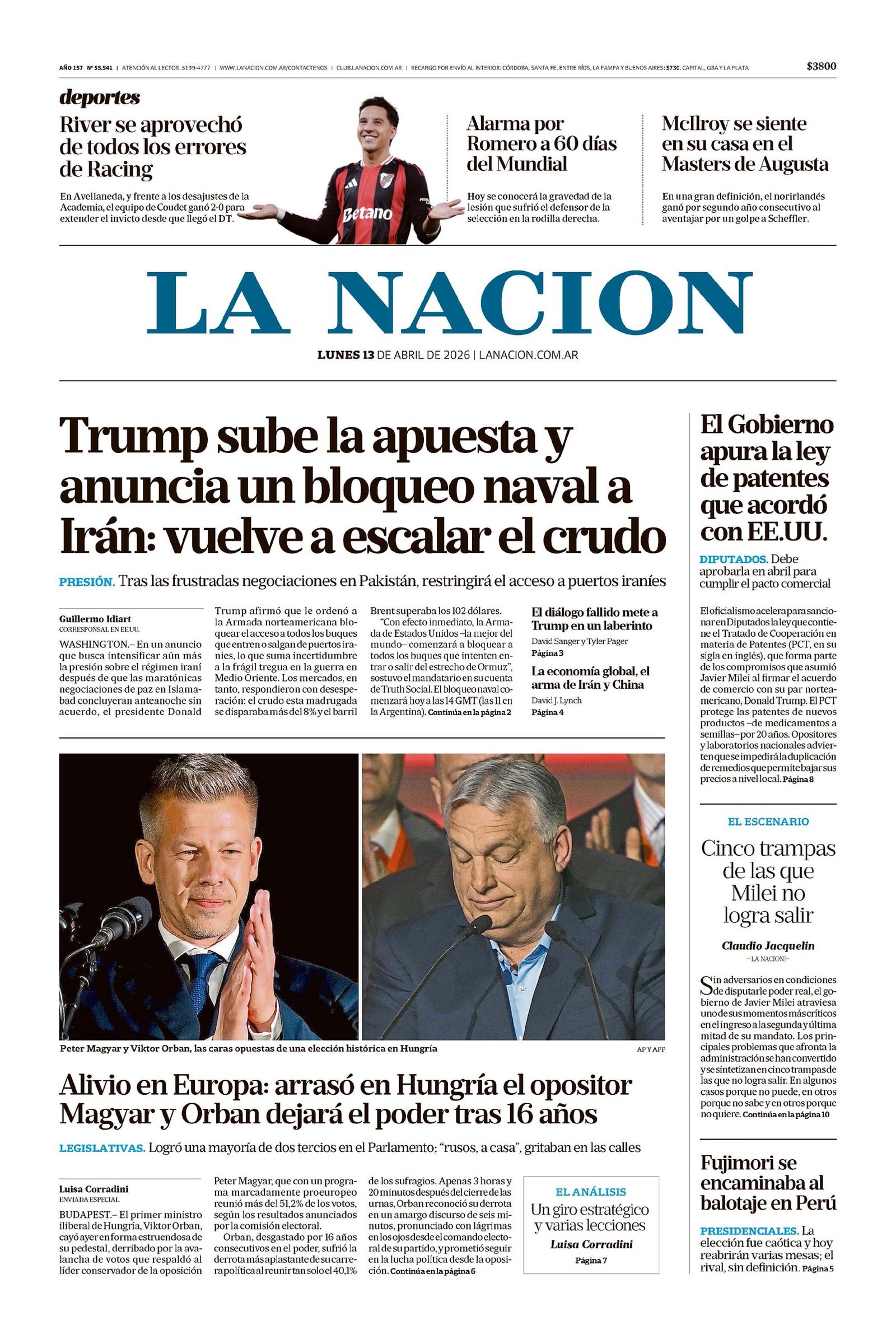 Tapas de los diarios del 13 de abril