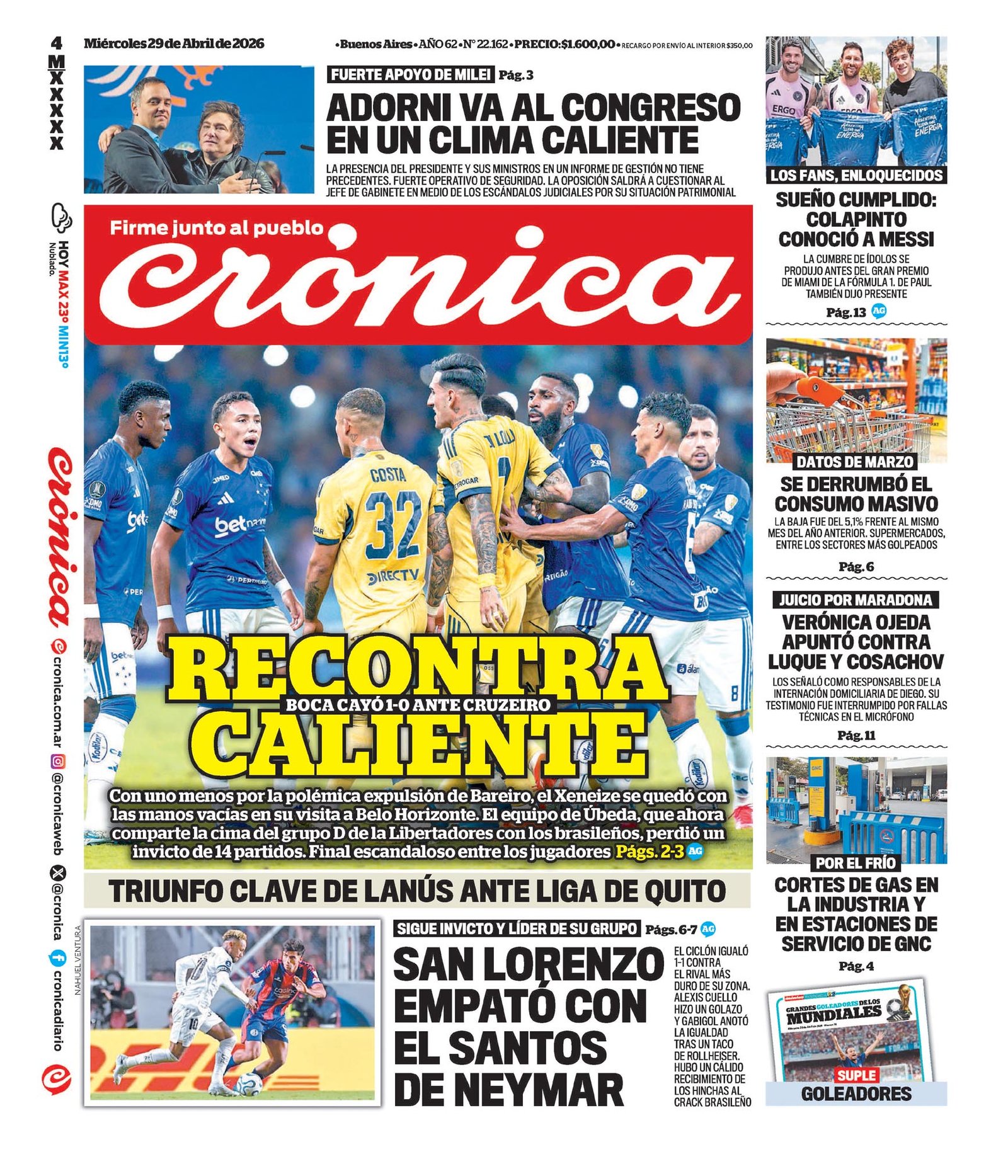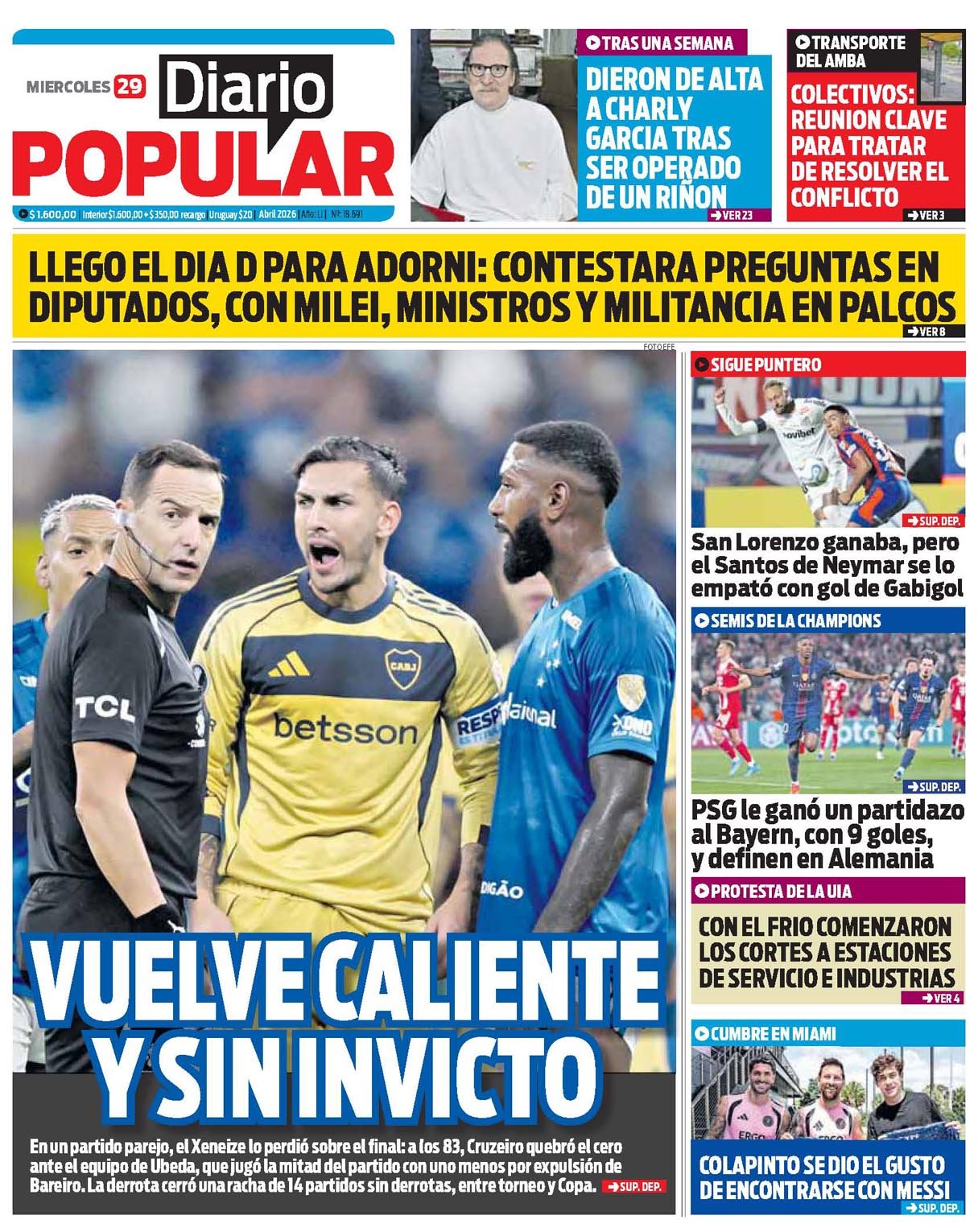 Tapas de los diarios del 29 de abril