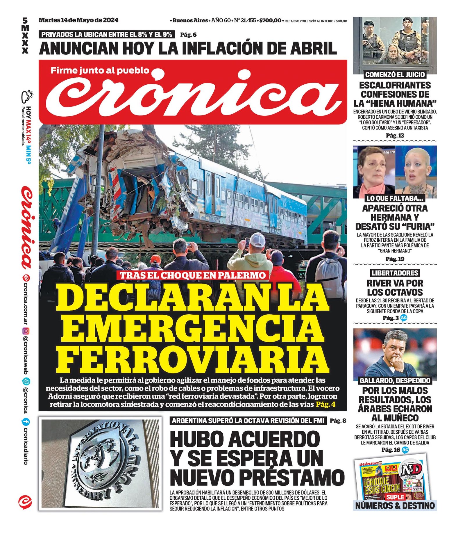 Tapas de los diarios del 14 de febrero